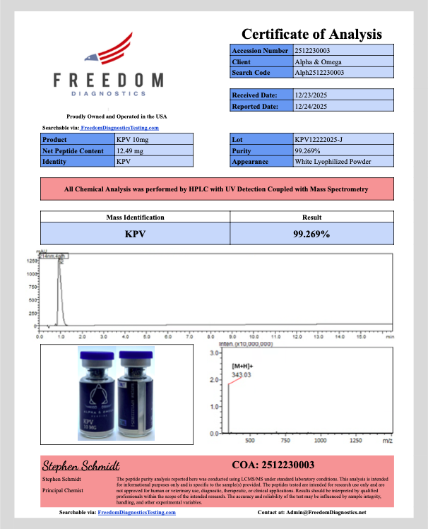 Please note: KPV is intended strictly for research use. Therefore, it is not for human use, and only trained staff should handle it under safe lab settings.