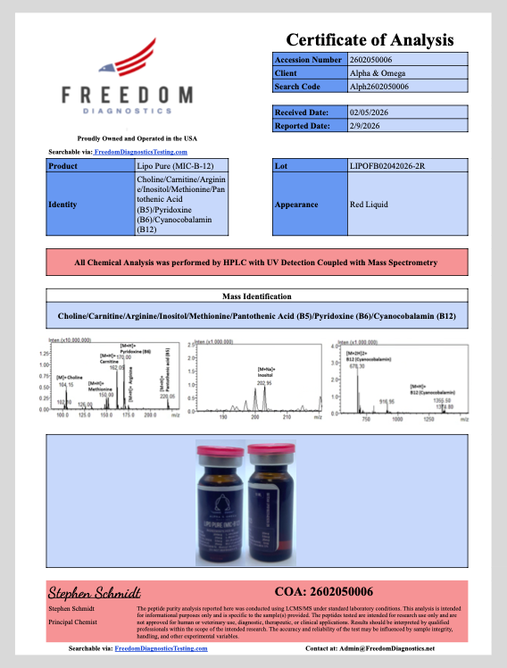 LIPO-B12 MIC (LIPO Pure) is a liquid blend of B-vitamins, amino acids, and lipotropic agents.